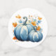 Aquarelle Bleu Citrouilles et feuilles d'automne