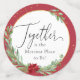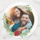 Thème Fêtes de Noël mariage de la table confetti design comprend votre photo préférée, la date mariage, les noms de mariée et mariée, monogramme nuptiale, ornement coeur rouge aquarelle, et un mariage de vacances amusant disant, le tout enveloppé dans la verdure des vacances aquarelle. #NoelMariage #MariageFêtes #Mariage