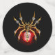 Araignée mécanique à vapeur avec or, engrenages en laiton et lampe en verre rouge sur un arrière - plan noir. Style Steampunk.