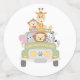 Décor de table de baby showers, joliment neutre pour les deux sexes. Cet ensemble de confettis présente diverses illustrations d'animaux de la jungle infantile (lion, éléphant, zèbre, singe et girafe), d'un véhicule safari et d'un empreinte de patte.