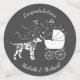 Inclure le grand frère ou la soeur en fourrure bébé dans la célébration avec cet adorable baby shower de chien dalmate ! Parfait pour un amoureux du chiot avec un bébé en route. Le Dalmatien est à côté d'un adorable chariot vintage. Le gris le rend parfait pour un baby shower neutre pour les hommes et les femmes !