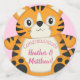 Cette collection de Baby showers de tigres est un thème de design avec un tigre tout simplement adorable sur une palette de couleurs rose, bleu ou vert qui célèbre votre anniversaire et Baby shower très spécial. Personnalisez ceci plus loin avec les détails de votre fête d'anniversaire et de votre baby shower facilement et rapidement. Appuyez simplement sur le bouton customiser pour réorganiser et formater le style et le placement du texte. Créé par Rachel Alvia, © Alicorn Studio