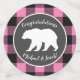 Baby shower à thème ours avec silhouette d'ours. Le chèque en buffle rose est parfait pour un baby shower à thème boisé ou lodge !