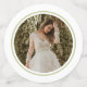 Confettis de table personnalisés avec le texte "future Mme" facilement personnalisable, le monogramme du prénom de la future mariée et un portrait de mariée ainsi que divers motifs dans des tons de vert sauge et blanc avec une illustration de fleur d'hortensia blanc antique qui relie le thème. Parfait pour une fête sudiste, verte et blanche, une garden party, un événement grand millennial, ces confettis de table seront un détail personnalisé favori de tous vos invités.