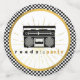 L'Hip hop urbain Retro 90's Baby shower Vibe ! présente un adorable bébé afro-américain afro-africain timide. Arrière - plan moderne en brique blanche. Couleurs noir, blanc et or. Accents de motif de tableau de bord et boombox. Customisez avec le nom de maman et papa ! ©2022 Miss Sassy Party Designs