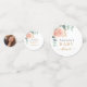 Un arrière - plan blanc chic décoré d'or rose, de fleurs rousses, de rose et d'eucalyptus. Personnalisez et ajoutez une photo et le nom de la mère à être.