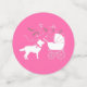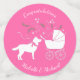 Inclure le grand frère ou la soeur en fourrure bébé dans la célébration avec cet adorable baby shower de chien Husky Sibérien ! Le rose est parfait pour un baby shower de fille ! Parfait pour un amoureux du chiot avec un bébé en route. Le Huskie est à côté d'un adorable chariot vintage.