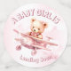 Mignonne Fille Bébé Ours Pilote Avion Rose Belle Confetti. Unique, beau, design élégant. Facile à personnaliser. Le style de police, la taille et les couleurs peuvent être modifiés. Éléments correspondants disponibles.