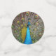 Oeuvre originale d'un spectacle coloré de paon exposé. Les plumes de queue irisées brillent dans les tons bleu, turquoise, vert et violet donnant à cet oiseau fier l'apparence de pourcentage. Les couleurs vives de cette majestueuse pintade brillent dans cet art vivant qui remplit toute l'espace design. Les paons sont des symboles de beauté, de grâce, de majesté, de fierté et de richesse. Parce que les paons sont associés au pourcentage, ils sont considérés comme de la chance.