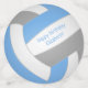 Ce confetti d'anniversaire de volley-ball pour filles ou garçons présente l'image d'un volley-ball avec des panneaux bleu clair, gris et blanc sur le devant et un simple volley-ball blanc ou l'âge de l'enfant sur le dos de chaque pièce de confetti avec un arrière - plan bleu clair - par katz_d_zynes
