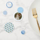Custom table confetti with easily personalized Best Day Ever text and a bridal portrait plus various patterns in blue and white with an antique blue hydrangea blossom illustration tying the theme together. Perfect for a southern, blue and white, garden party, grand millennial event, this table confetti will be a favorite personalized detail of all your guests.