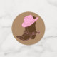Baby shower table confetti avec un thème champêtre cowgirl bottes.