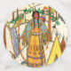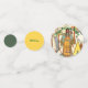Ce confetti de table a un look brodé avec une femme amérindienne en vêtements traditionnels jaunes tenant un arc et une flèche dans les bois sur les grands cercles. Les cercles moyens sont jaune vif, les petits sont vert foncé. Customisez votre texte sur tous les cercles avec les modèles.