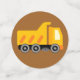 Ce design comprend quatre camions de construction classiques en jaune gras disposés ensemble sur un arrière - plan marron et noir. Il comprend d'autres éléments de construction comme des rails de garde et des cônes de circulation et des bandes de trafic noir et jaune. Nous vous avons couvert pour une soirée à thème camions de construction : fournitures, déco, délicieuses friandises et cadeaux personnalisés significatifs!