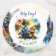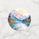Amusant de pêche à thème baby shower de garçon confetti. Un jeu de pêche amusant, c'est un garçon. Petit garçon mignon avec un poteau de pêche assis à côté de son chien chiot au bord du lac, des montagnes et des arbres. Elles ont un thème bleu et vert.