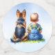 Baby shower personnalisation ultrasons confetti. Petit garçon à l'aquarelle mignonne dans des bretelles assis à côté d'un chien berger allemand. Un petit gardien pour que chaque membre de la famille se sente spécial.