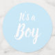 C'est un garçon, baby shower bleu clair et blanc, le genre révèle la fête mignonne Confetti moderne. Type de script moderne blanc sur arrière - plan bleu clair.