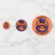 Chat orange avec Casquette sorcière violette Halloween Confetti. Dessin d'un mignon chat orange avec un casquette violet et orange.