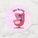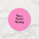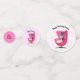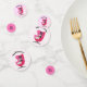 Ce confetti de table a un chat noir et blanc de style du milieu du siècle assis ensemble dans une chaise rose vibrante sur des pois roses et des tons d'arrière - plans roses. Customisez votre texte avec les modèles.