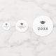 Ce confetti de photo chic grad casquette félicite les grands diplômés et est parfait pour une fête moderne de remise des diplômes. Le design simple présente une typographie minimaliste classique en noir et blanc avec un casquette d'aquarelle noir et or. Personnalisez le confetti de table avec 3 photos, le nom du diplômé et l'année.