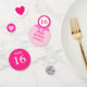 Coeur de seizième anniversaire chic sur Table Confetti rose et blanc. Textes et chiffres prêts à être personnalisés. Un accent d'image diamant pour une touche d'élégance !