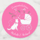 Inclure le grand frère ou la soeur en fourrure bébé dans la célébration avec cette adorable conception de baby shower chien berger allemand! Parfait et mignon pour un amoureux du chiot avec un bébé sur le chemin. Le berger allemand se trouve à côté d'un adorable chariot vintage. Le rose en fait un endroit parfait pour une petite fille en route !