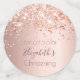 Un arrière - plan d'or rose décoré de confettis. Personnalisez et ajoutez une date et un nom/événement. Lettres de couleur or rose foncé. Quelques jetons de confetti avec nom et date, d'autres avec une croix. Ajoutez votre propre photo sur deux des puces.