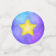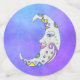 Ce confetti de table a un thème céleste avec des arrière - plans de ciel dans de jolies couleurs de bleus, violets et roses. Les grands cercles ont une lune blanche fantaisie ornée de formes colorées et d'un visage, les petits cercles ont des étoiles jaunes.
