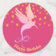 Confetti à look métallique or et colibri d'anniversaire sur table rose et blanc Confetti. Le texte peut être personnalisé.