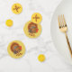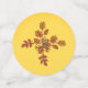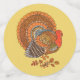 Ce confetti de table a de grands cercles jaunes dorés avec une dinde mâle avec plumes d'automne et feuilles d'automne. Le cercle moyen est un jaune plus brillant avec des feuilles d'automne colorées et de petits cercles ont un mélange de jaunes dorés.