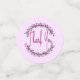 Montrez votre gratitude avec ces confettis ronds chics de trois tailles. Il présente une conception de demi-couronne de feuilles dans des nuances de violet sur un fond de blanc et différentes nuances de violet. Au centre se trouve une typographie manuscrite avec "Merci". Vous pouvez l'utiliser pour les mariages, les baby showers et autres besoins universels de remerciement.