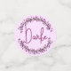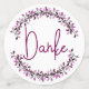 Montrez votre gratitude avec ces confettis ronds chic de trois tailles. Il comporte un design de demi-couronne de feuilles dans des nuances de violet sur un fond de blanc et différentes nuances de violet. Au centre, il y a une typographie manuscrite avec le mot allemand de remerciement "Danke". Vous pouvez l'utiliser pour les mariages, les fêtes prénatales et d'autres occasions de remerciement universel.