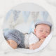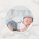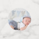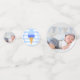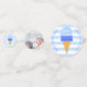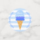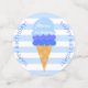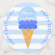 Pour une soirée de 1er anniversaire sur le thème de la crème glacée sucrée avec un grand cône de crème glacée bleue sur un arrière - plan de rayures blanches et bleues pastel. 3 jetons : Personnalisez et ajoutez le nom de l'enfant et de l'âge. Le texte : Joyeux anniversaire ! 3 jetons : ajoutez la photo pour enfants.
