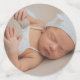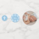 Table de baptême d'hiver confetti pour un garçon avec deux photos de votre bébé garçon, ses initiales, croix bleues et flocons de neige. Table de baptême de garçon confetti pour un baptême d'hiver bleu.