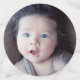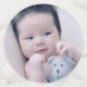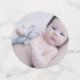 Chic confetti table pour un baptême en bleu et blanc, avec quatre de vos propres photos de votre bébé garçon. Ajoutez les initiales de votre bébé en bleu contre blanc à un côté du plus petit confetti, qui a une croix mignonne de l'autre côté.