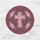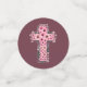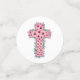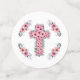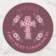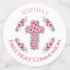 Belle croix de fleur rose pour votre première sainte communion. Décoré avec de belles et belles aquarelles rose vif fleurs et feuillage vert. Modèle personnalisé pour un confetti de table unique et très spécial.