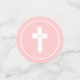 Chic confetti de table pour un baptême en rose et blanc, avec quatre de vos propres photos de votre petite fille. Ajoutez les initiales de votre bébé en rose contre blanc à un côté du plus petit confetti, qui a une jolie croix de l'autre côté.