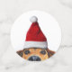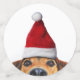 Beau joyeux dessin animal de Noël : Curieux chien portant un chapeau de Père Noël. Salutation saisonnière écrite en lettres de typographie moderne.