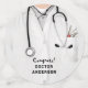 Décoration de fête de soins de santé créative pour la célébration de la remise de diplôme de médecin ou d'études de médecine avec une blouse de laboratoire et un stéthoscope. Pour personnaliser, modifiez le texte pour ajouter le nom du médecin.