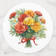 Confettis de table avec un bouquet de Souci à l'aquarelle noué avec un ruban rouge. Couleurs vives, longues tiges et feuilles vertes. Ajoutez une touche de couleur à votre fête et occasion.