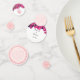 En-tête floral tropical élégant sur confettis de table de mariage blanc. Cœurs et fleurs en forme de cœur de couleurs rose et blanc. Prêt à être personnalisé pour les mariages, les anniversaires et plus encore.