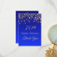 Carte plate de Merci d'anniversaire - confettis ronds d'or sur un arrière - plan lumineux de bleu de saphir.