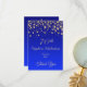 Carte plate de Merci d'anniversaire - confettis ronds d'or sur un arrière - plan lumineux de bleu de saphir.