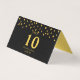 Confettis élégants de couleur métallique dorée sur carte de table pliante noire.