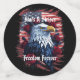 Montrez votre patriotisme avec style. Cette conception est composée d'un aigle chauve entouré de roses rouges devant un drapeau américain. Convient pour le 4 juillet, l'Indépendance ou le Jour du Président, ou tout jour férié national.