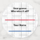 Obtenez les devis de tout le monde pour gagner tout le truc, découvrez leurs équipes préférées, ou utilisez-les comme de petits jetons pour ramener chez vous et mettre dans un album. Ces pièces de confettis de table sont très polyvalentes. Bien qu'il soit conçu avec l'excitation des parties de basket-ball de mars à l'esprit, ce design peut être utilisé comme pour n'importe quel support ou élimination tournoi de regarder de la télévision de réalité aux plus grands événements sportifs du monde. Il est sur le point sans être trop évident, et le design relativement simple signifie que vous pouvez remplir l'espace avec du texte et il aura toujours l'air bon. Le jeu de couleurs, à l'exception de l'élément de crochet, peut être customisé pour votre équipe préférée. Ce design est le mieux avec la couleur plus claire comme l'arrière - plan (de sorte que les crochets apparaissent). Description de la conception : L'avant et l'arrière de toutes les pièces sont une conception géométrique interconnectée de type support. Il existe 3 tailles différentes. Un côté de chaque pièce a le même texte modèle personnalisable qui dit, "Votre ticket est poinçonné. Tiffany's Watch Party. 20xx mars", en police noire. Le deuxième côté du grand cercle comporte du texte modèle avec deux lignes que vous pouvez faire remplir par les invités. Comme on peut le voir, il est écrit : "Votre supposition : qui gagne tout ?" avec une ligne rouge en dessous pour écrire dans la réponse. En dessous, le texte modèle qui dit, "Votre nom" avec une ligne bleue en dessous pour écrire dans la réponse. Le deuxième côté du cercle moyen a un texte modèle qui, comme montré, dit "Buzzerbeaters !" séparés sur deux lignes dans le même texte noir. Le deuxième côté du troisième et plus petit cercle a un texte modèle qui, comme montré, dit, "Merci pour venir !"