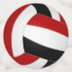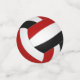 Ce confetti d'anniversaire de volley-ball pour filles ou garçons présente l'image réaliste d'un volley-ball qui a des panneaux rouges, noirs et blancs sur le devant et le dos de chaque pièce - par katz_d_zynes