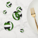 Ce confetti d'anniversaire de volley-ball pour filles ou garçons présente l'image réaliste d'un volley-ball qui a des panneaux verts, noirs et blancs sur le devant et le dos de chaque pièce - par katz_d_zynes
