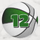 L'avant et l'arrière de chaque pièce de ce confetti d'anniversaire de basket-ball présente l'image réaliste d'un basketball qui a alterné des panneaux verts, blancs et gris - personnalisez l'avant du grand confetti avec un numéro d'âge ou de maillot enfant, ou effacez - par katz_d_zynes