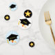 Élégante casquette de doctorat et étoiles scintillantes sur Table Confetti noir et blanc. Texte prêt à être personnalisé. Idéal pour les diplômes ! Brille comme une étoile !